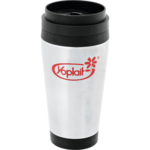 Twist-on thumb-slide lid. Double-wall tumbler with plastic liner. 14oz.