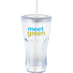 The Fountain Soda 24oz Tumbler is a single-wall tumbler with a twist-on lid and a matching straw. Straws are included, but not inserted. Hand wash only and follow any included care guidelines.