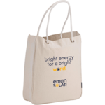Main body of bag made from certified 100% organic cotton. Organic cotton farming techniques maintain soil fertility and reduce toxic pesticides and insecticides that pollute our air and water. A great alternative to plastic bags. Open main compartment. Durable and soft cotton cording handles attached to bag with grommet accents. 9" handle drop height. Through a partnership with 1% For The Planet, one percent of sales of this and all EcoSmart products will be donated to nonprofits dedicated to protecting the planet.